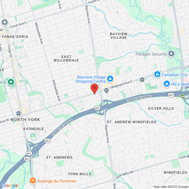 Located in Bayview - Sheppard Health Care Clinic (west. of the big ESSEL building)